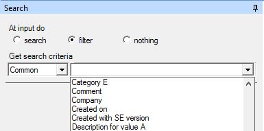 To create the search criteria, the common properties, the custom properties, property groups (multiple) or saved favorites may be selected.